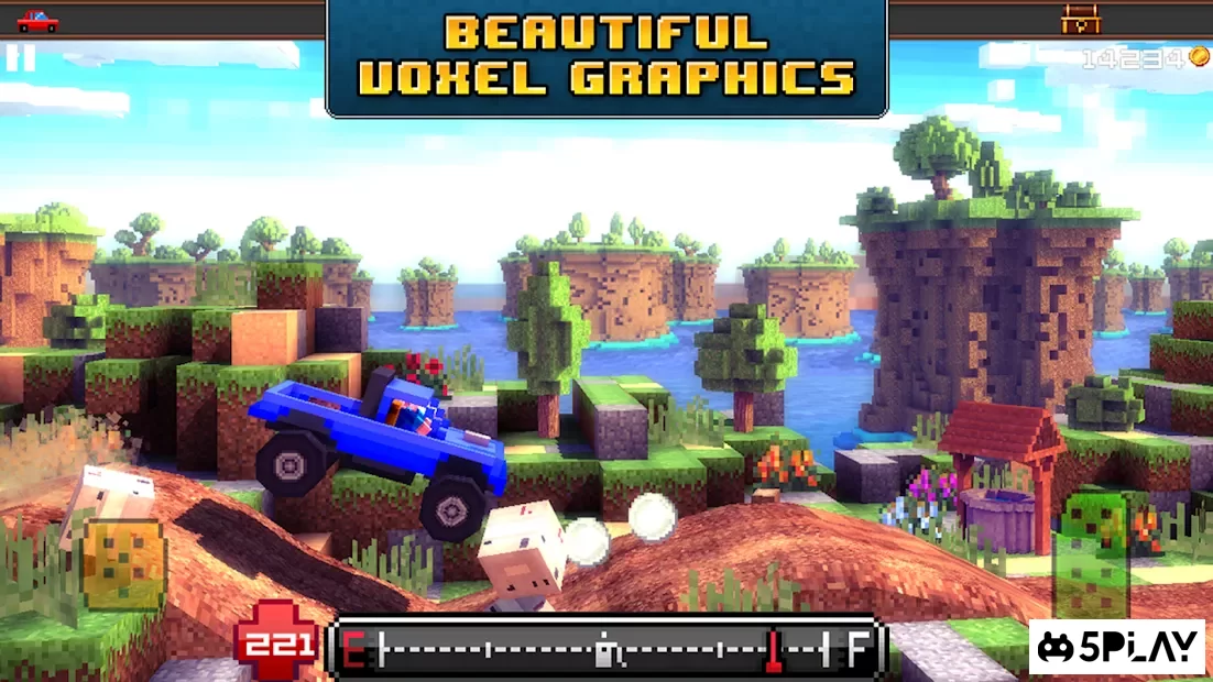 Потрясающий автомобильный симулятор для смартфонов и планшетов Blocky Roads порадует игроков возможностью проехаться по 12-ти достаточно сложным трассам, а также создать собственное транспортное средство при помощи гибкой системы улучшений. Игра отличается очень привлекательной графикой, которая напоминает популярную игру Minecraft. Все на экране в игре состоит из кубиков. Сам игровой процесс схож с популярным автомобильным симулятором для сенсорных устройств Hill Climb Racing. Простая, но красивая графика и очень реалистический физический движок, сделают игровой процесс очень увлекательным.