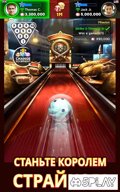 Bowling King - качественный симулятор боулинга для Андроид, в котором основной упор сделан на мультиплеер. В многопользовательском режиме игрок сможет бросить вызов своим друзьям или незнакомым соперникам со всего света. Матчи будут проходить в различных специализированных клубах мира, коих здесь насчитывается несколько десятков. Помимо этого игроки также смогут попытать счастья в рулетке или "одноруком бандите", ведь это поможет собрать все 120 достижений, что сделает геймера настоящим королем дорожки.
