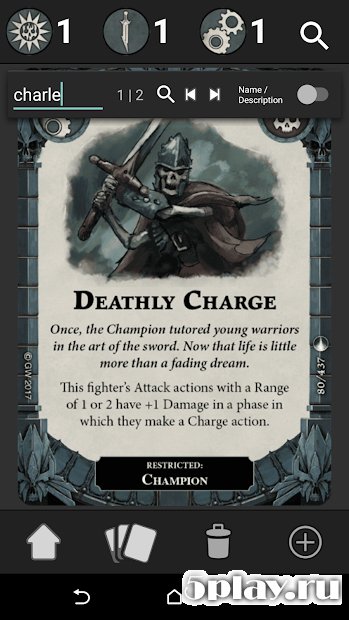 Underdeck English - функциональное Андроид-приложение для создания колод карт к игре Warhammer Underworlds: Shadespire. Программа легка в использовании благодаря проработанному интерфейсом. Благодаря ей игроки получат возможность создания карточных наборов для всех восьми фракций. Утилита позволяет сохранять полученный результат, а также делиться им с друзьями. К тому же пользователь может фильтровать, менять название и описание карт, а также загружать и пробовать колод своих товарищей прямо в приложении.