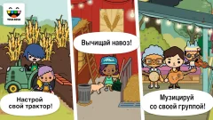 Каждая из них посвящена определенному действию, будь то доение коровы, уборка, торговля товарами на рынке или посещение магазинов для покупки нужной утвари. При этом нужно будет взаимодействовать с интерактивным окружением и предметами, что делает игру не простой аркадой, а развивающей головоломкой. Тут можно встретить разнообразных красочных героев и детализированное окружение. Визуальная красота достигается с помощью характерной для всех проектов Toca Boca графике.