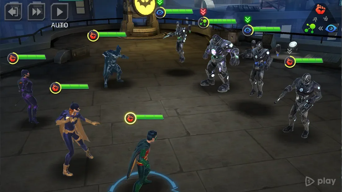 Каждый герой использует свои суперспособности: Бэтмен полагается на гаджеты, Чудо-Женщина – на меч, лассо правды и браслеты, а Супермен стреляет лазерами из глаз. Управлять персонажами можно как самостоятельно, так и поставив их на автопилот. Стоит отметить, что развитие героев не стоит на мест, и их способности нужно прокачивать. Не обошли игру стороной и сражения 1 на 1, в которых можно помериться силами с другими пользователями.