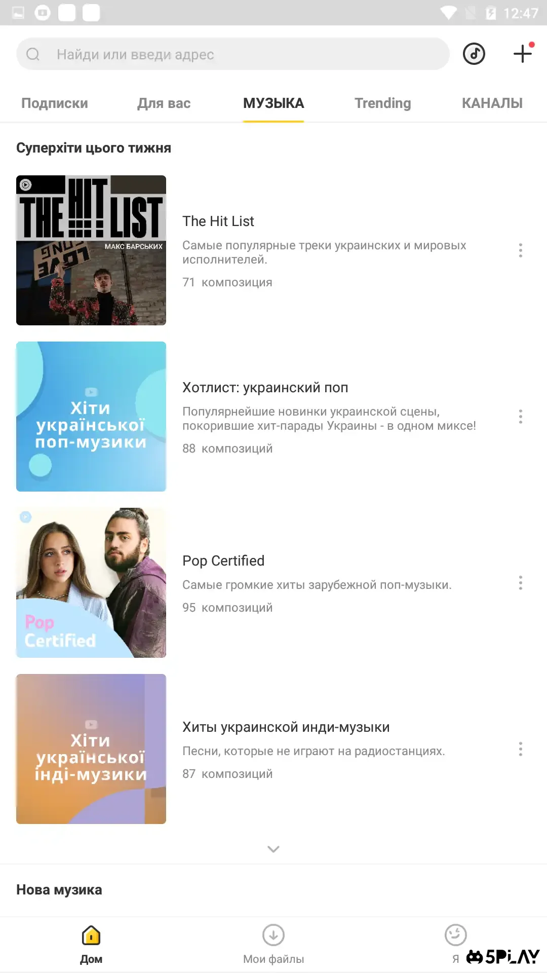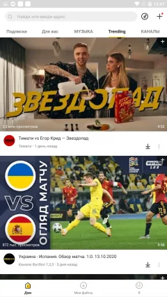 Еще одной отличительной особенностью является разделение роликов на Видео и Музыку. Если первая категория включает в себя все видеоролики, то при нажатии на вторую отображаются только музыкальные клипы, что весьма удобно для меломанов. Кроме того здесь есть возможность загрузки роликов в память устройства.