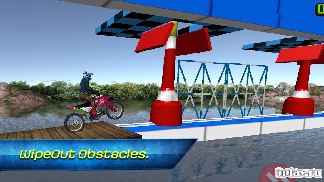 Bike Wipeout Edition - экстремальные гонки на быстрых мотобайках по опасным трассам с препятствиями. Пользователь станет управлять мотоциклом, с помощью которого нужно пройти через множество преграды в виде маятников, заборов, вращающихся в разных плоскостях шаров и других препятствий. Для этого нужно рассчитывать время и двигаться на железном коне с нужной скоростью. В случае неудачи мотоциклист вместе с транспортным средством отправится в воду, а успешное прохождение треков позволит открыть новые мотоциклы.