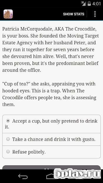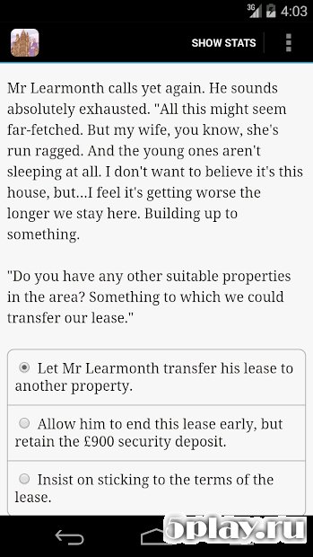 For Rent: Haunted House - любопытная интерактивная новелла, в которой игрок должен будет сдавать в аренду дом с приведениями. Мало кто захочет жить в доме, по коридорам которого летают леденящие душу призраки, однако сдать его нужно, ведь так велел босс. Пользователю придется всячески хитрить и извиваться перед потенциальными арендаторами жилого помещения. Даже если удастся кого-нибудь заселить в странный дом, это вовсе не значит, что новые жильцы будут довольны условиями. Поэтому геймер должен постоянно выбирать правильные варианты ответов для дальнейшего продвижения по сюжету к одной из нескольких концовок.