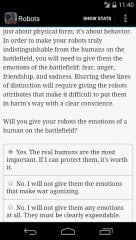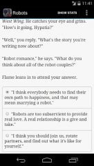 Choice of Robots - интерактивная новелла, повествующая о гениальном учёном, занимающимся разработкой искусственного интеллекта и роботов. Пользователь возьмёт на себя роль талантливого разработчика. В процессе прохождения игроку предстоит принимать непростые решения в ключевые моменты повествования. От выбора геймера будет зависеть, по какому направлению пойдет сюжет, и как это отразится на финале. В результате протагонист может производить роботов для помощи людям или же для захвата власти над человечеством.