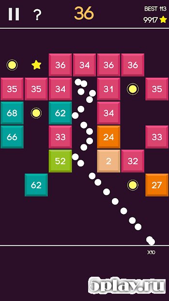 Brick Blast Ball - аркада, в которой игрок будет управлять шариком, разрушающим движущиеся вниз разноцветные блоки. Чтобы уничтожить каждый цветной квадрат, необходимо попасть в него определенное количество раз. Число попаданий указано на нем, поэтому пользователь сможет ориентироваться и сбивать наиболее близкие цели. Игровой процесс здесь бесконечен, поэтому при должном умении можно постоянно ставить рекорды прохождения. Также постепенно будут открываться новые способности шара.