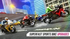 City Bike Race - аркадные гонки на мотоциклах по городским трассам с бесконечным геймплеем. В этой игре пользователя ожидает потрясающая трехмерная графика, множество мотобайков, несколько видов камеры, реалистичная физика и качественная озвучка. Игроку необходимо будет ездить по различным трассам в нескольких режимах. При этом нужно остерегаться попадания в аварийные ситуации, для чего нужно умело перемещаться по дорожному полотну. В процессе прохождения геймеры получат возможность открытия новых железных коней и апгрейдов к ним.