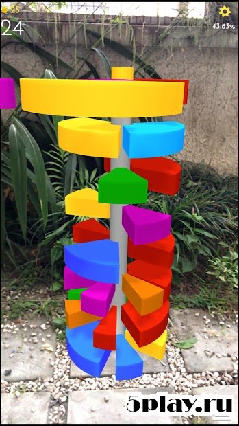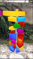 аркада с поддержкой технологии дополненной реальности. В ней игроку необходимо построить как можно более высокую пирамиду. Для этого нужно нанизывать округлые цветные элементы на вертикальный штык. Для достижения успеха пользователь должен следить за тем, чтобы элементы одинакового цвета не соприкасались между собой. Также время от времени требуется поддавливать подходящие по размерам детали для формирования лучшей компоновки пирамидки. Все это можно делать на фоне своей комнаты, но при желании геймер имеет возможность сменить задний план.