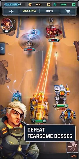 Idle War - новейшая экшн-стратегия с качественной графикой и крутыми сражениями. Пользователь будет постепенно выстраивать свою базу и защищать ее от нападок множества противников. Чтобы не подпустить вражескую технику на свой форпост, необходимо использовать различную футуристичную военную технику. Каждый из юнитов обладает своими особенностями, на которых и нудно строить стратегию защиты. Всего же здесь имеется свыше сорока единиц юнитов, каждый из которых геймер сможет попробовать и оценить в деле.