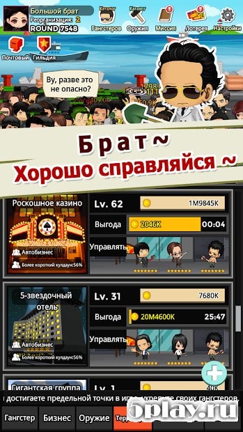 Уличный гангстер - криминальный кликер с элементами RPG, в котором игрок сколотит преступную группировку и будет наводить страх на других членов банды по всему городу. Чтобы стать самым известным криминальным авторитетом, пользователь сможет завербовать в свою команду самых крутых бойцов, которые обеспечат захват территорий и развитие криминального бизнеса. Не обойдется здесь и без боев стенка на стенку против других группировок, но перед участием в них геймер должен оборудовать своих подопечных нормальным оружием и экипировкой.