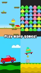 Как бы там ни было, Поу очень любит играть и веселится. Разработчики создали множество виртуальных игровых площадок, на которых пользователь может развлекать питомца, играя в забавные мини-игры. Среди них есть гонка, напоминающая Hill Climb Racing, головоломка три в ряд, некое подобие тетриса и многое другое. За игровые достижения будет начисляться специальная валюта.