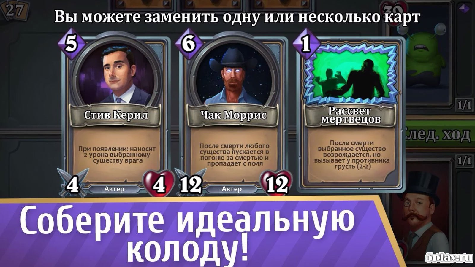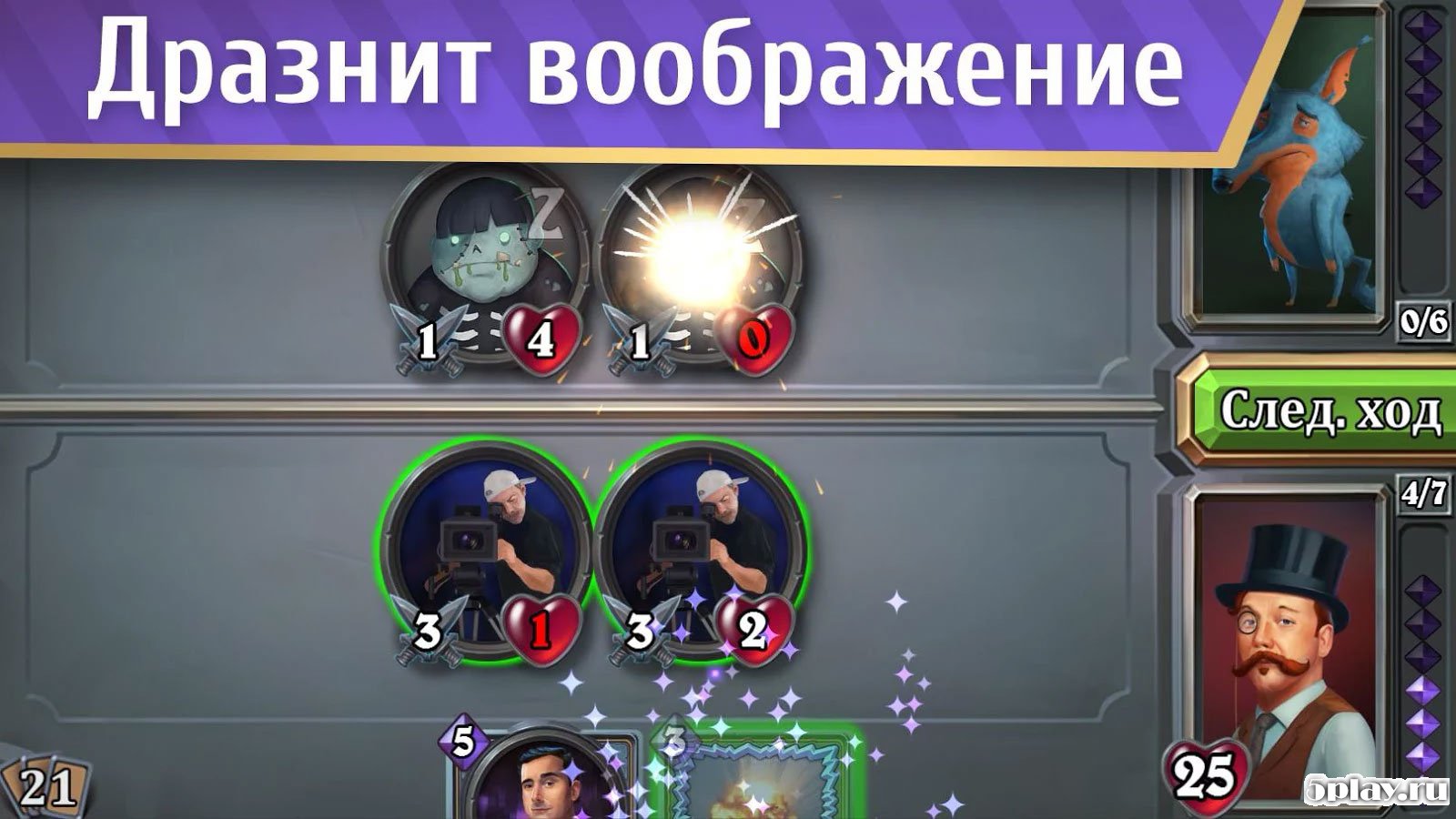 Мастер Карт - качественная игра, копирующая знаменитую Heartstone. Как и в оригинальном проекте начало предваряется небольшим обучением. Здесь нужно противостоять разным противникам в лице забавных монстров. Пользователи по очереди отправляют на игровое поле карты, на которых имеется либо персонаж, либо волшебный предмет.