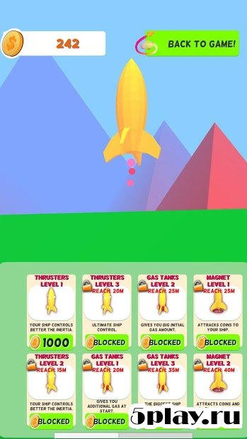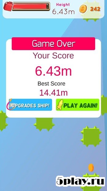 Jump Rocket: SpaceX - типичный аркадный раннер, отличающийся красочной графикой. Игрок предстанет здесь в образе испытателя ракеты, которой необходимо выйти в космос. Для начала ей необходимо просто взлететь, а далее космическому челкноку нужно продержаться в воздухе как можно дольше. Для этого пользователь должен умело маневрировать между различными объектами, тем самым не давая ракете столкнуться с ними. Каждый пройденный метр будет стоить геймеру нескольких золотых монет. Данный заработок можно потратить на приобретение новых летательных аппаратов.