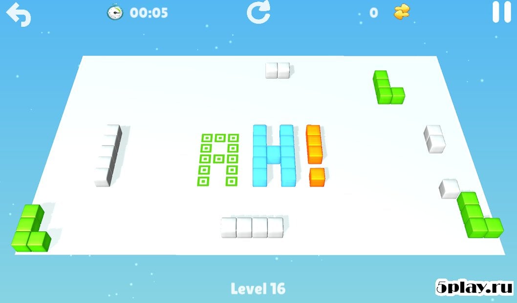 головоломка для Андроид с необычным игровым процессом. Игроку предлагается преодолеть более 125 уровней, на которых необходимо сформировать узор или изображение из цветных кубиков. Для получения необходимого результата нужно правильно разместить группы разноцветных кубов на игровой площадке. При этом пользователь сможет выбрать один из двух вариантов управления: стрелочки и жесты. Помимо этого геймеров ждут запоминающиеся звуковые эффекты, красочная графика и приятная атмосфера.