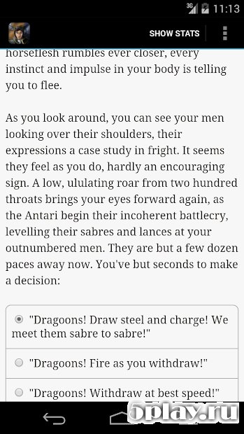 Sabres of Infinity - интерактивная книга с закрученным сюжетом и множеством вариантов развития событий. Пользователь выступит офицером королевских войск в военном конфликте. Мир игры совмещает в себе реалистичные и фэнтезийные элементы, поэтому пользователь будет иметь дело с магией и волшебством. Чтобы победить противника, геймер должен использовать имеющиеся у него вооруженные силы. При этом можно действовать как в своих корыстных интересах, так и во благо собственного войска. В любом случае пользователей ожидают неожиданные сюжетные твисты и драматичная развязка.