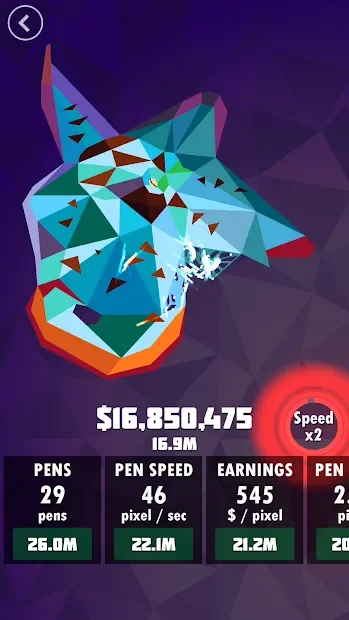 Idle Painter - яркий тайм-киллер, предлагающий пользователю основать виртуальную арт-студию. В ней пользователь станет рисовать полигональные изображения различной тематики. Чтобы изобразить картинку, необходимо просто нажимать на экран, в то время как перо, карандаш или какой-либо другой инструмент будет рисовать. Попутно с этим геймер сможет приобретать новый инструментарий, который позволит рисовать ещё быстрее и красивее. Каждое законченное произведение поможет заработать некоторую сумму денег, на которые и будут приобретаться улучшения.