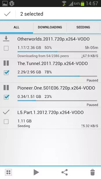 aTorrent PRO - торрент-клиент для устройств на платформе Android, отличающийся набором всех необходимых функций для скачивания файлов из сети Интернет. Здесь, как и на стационарном компьютере, есть следующие возможности: одновременная загрузка нескольких файлов, открытие торрент-клиента прямо в браузере, частичное скачивание с выбором нужного файла в папке, поддержка magnet-ссылок. Также тут можно выбрать папку для загрузки и остановить скачивание, если к смартфону или планшету подключено зарядное устройство. В общем и целом, данная программа является полноценным клиентом для загрузки контента с торрент-трекеров.
