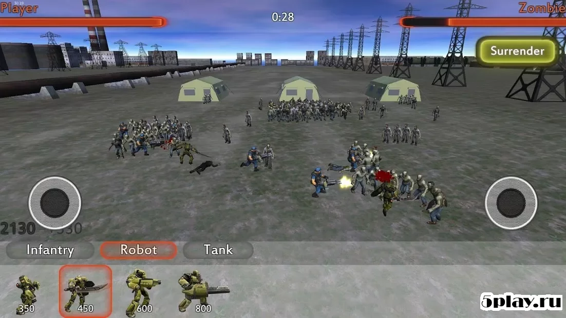Zombie War Dead World 2 - стратегический экшн, действие которого происходит после заражения значительной части планеты зомби-вирусом. Зараза превратила множество людей в ходячих мертвецов, имеющих лишь низменную потребность убивать и кромсать обычных людей. Для предотвращения такого развития событий игрок должен будет взять на себя обязанности военного командира и обеспечить уничтожение зараженных. В качестве средств выполнения задачи ему предстоит использовать несколько типов боевых юнитов, в числе которых будут как солдаты, так и различная военная техника.