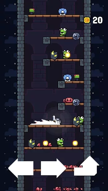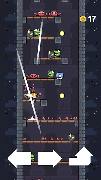 аркада с пиксельной графикой и свежим геймплеем. Пользователь будет играть за рыцаря, способного проходить сквозь стены и таким образом побеждать врагов. В процессе прохождения герой будет перемещаться по башне снизу вверх. Попутно с раздачей тумаков персонаж сможет собирать монетки, с помощью которых приобретаются различные улучшения. Управление здесь осуществляется тремя клавишами, отвечающими за прыжки и перемещение рыцаря вправо и влево. Осваивается оно легко, однако прохождение от этого не станет проще из-за весомой сложности игры.